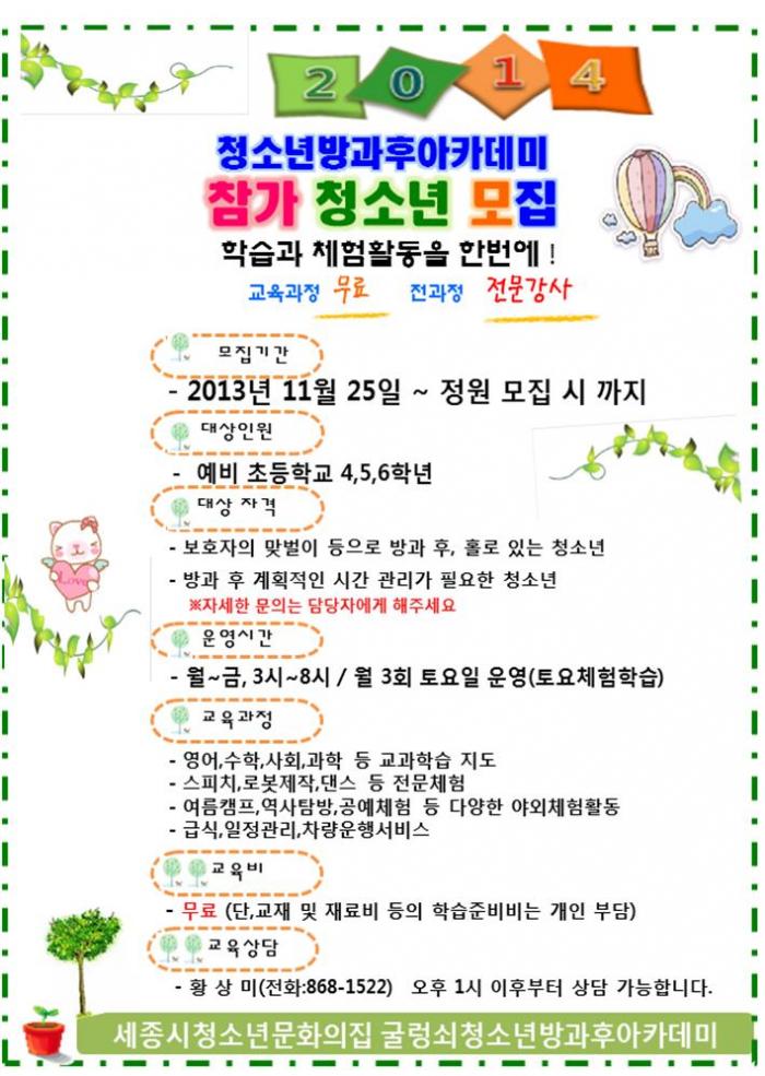 2014 청소년방과후아카데미 참가 청소년 모집 페이지 정보 작성자 관리자 댓글 0건 조회 10,101회 작성일 13-11-13 02:11 목록 본문 이전글가족역량강화프로그램 "가족자활어울마당" 참가자 모집 13.12.03 다음글세종시청소년문화존 "페스티벌 ZONE" 안내 13.11.07 댓글 0 댓글목록 등록된 댓글이 없습니다.