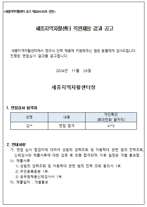 세종지역자활센터 직원채용 결과 공고 페이지 정보 작성자 관리자 댓글 0건 조회 4,649회 작성일 24-11-26 15:36 목록 본문 - 이전글세종지역자활센터 25년도 예산 공개 25.01.09 다음글세종지역자활센터 기간제근로자 채용 공고 24.11.01 댓글 0 댓글목록 등록된 댓글이 없습니다.
