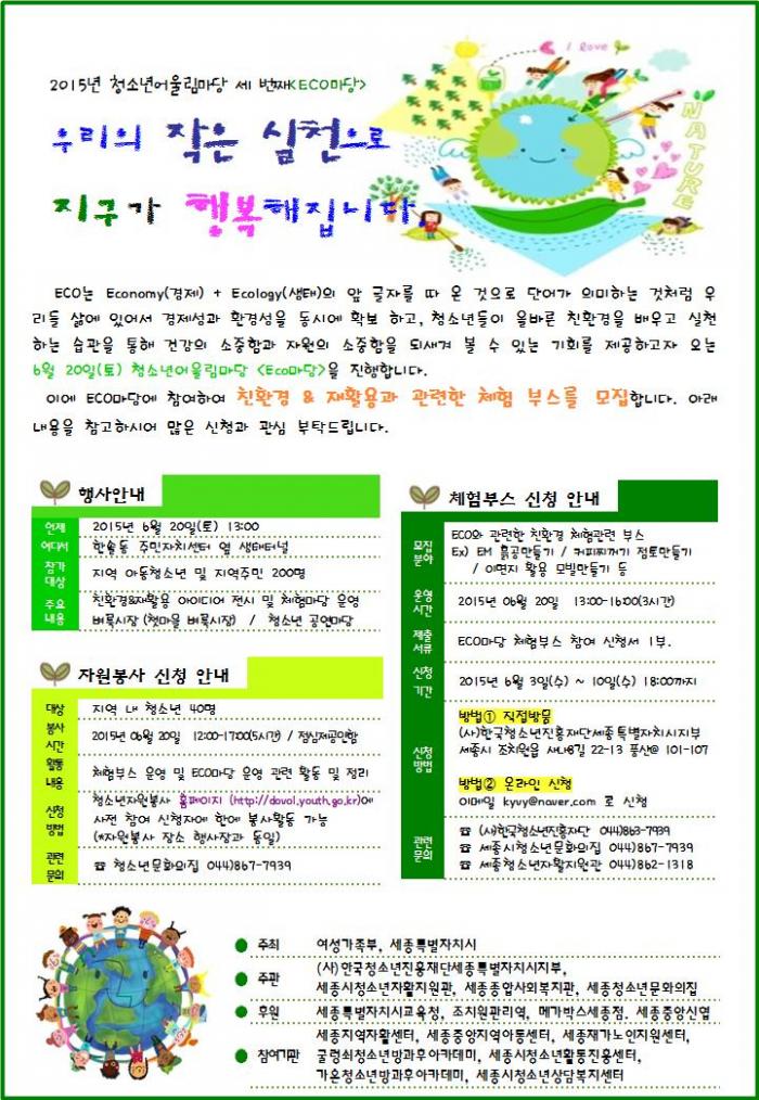 청소년어울림마당 "ECO마당" 페이지 정보 작성자 관리자 댓글 0건 조회 10,844회 작성일 15-06-03 06:06 목록 본문 이전글전문 자원봉사자를 모집합니다. 15.06.09 다음글전문직업인은 모집합니다. 15.06.01 댓글 0 댓글목록 등록된 댓글이 없습니다.